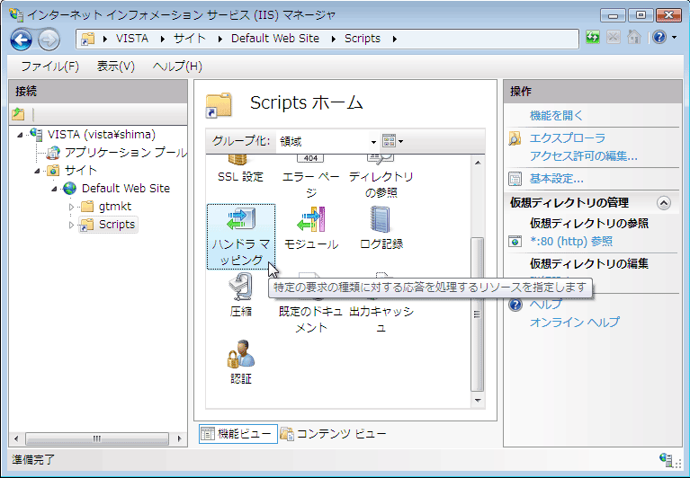 - 仮想ディレクトリのエイリアス名に「Scripts」を入力します。